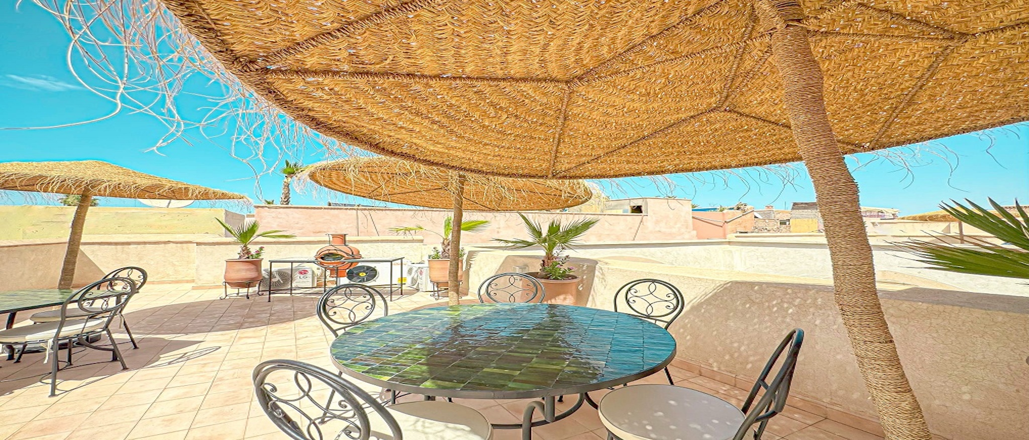 Ce Riad est la création d’un architecte Italien qui avait pour ambition de partager son amour des lieux et son savoir faire pour vous offrir un endroit atypique. Il a pris soin de choisir des matériaux de qualité et l’a aménagé avec du mobilier haut de gamme pour vous assurez un séjour d’un grand confort.